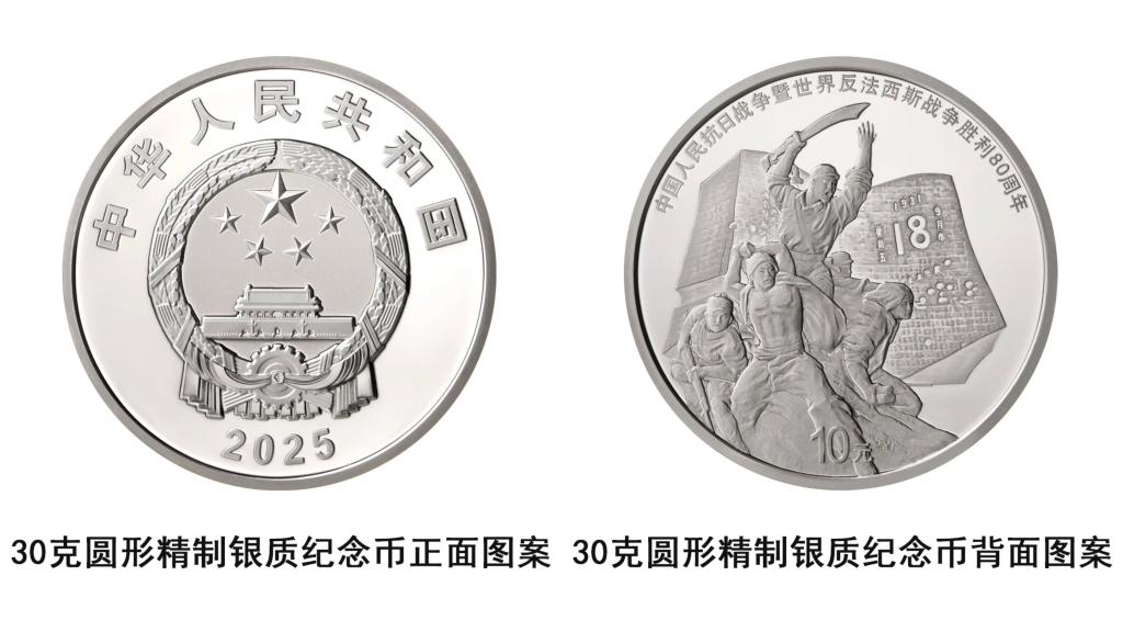 记者8月28日从中国人民银行获悉,中国人民银行定于9月3日起发行中国人民抗日战争暨世界反法西斯战争胜利80周年纪念币,其中双色铜合金纪念币1枚,8克金币1枚,150克银币1枚,30克银币1枚,均为中华人民共和国法定货币。