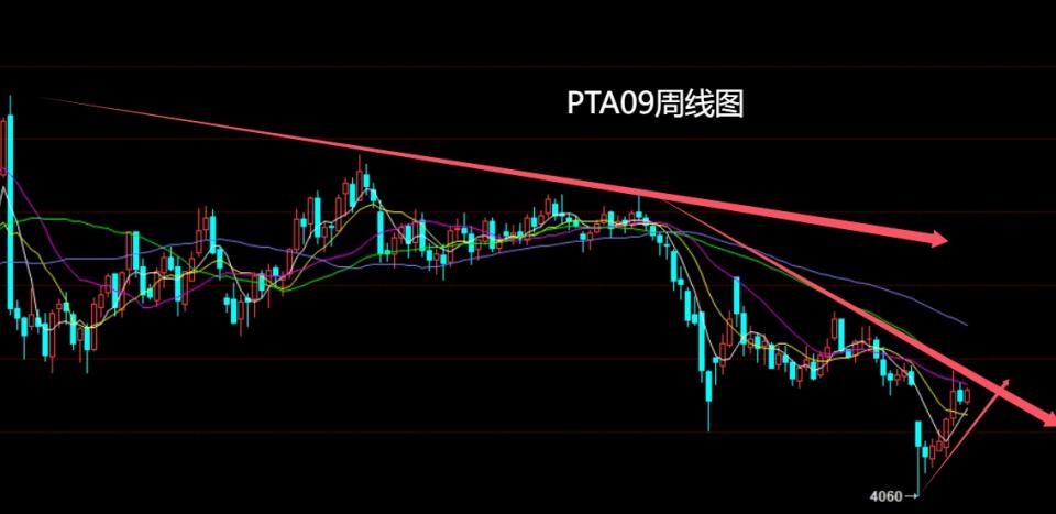 PTA09市场上周开盘在4787的位置后行情小幅拉升给出4840的位置后行情震荡回落,周线的位置后行情尾盘拉升,周线的位置后,周线以一根下影线很长的启明星形态收线,而这样的形态收尾后,本周4730多止损4710,目标看4790和4840.破位看4900和4935.